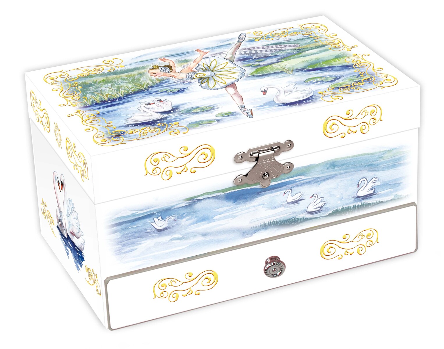 Introducing the Kaper Kidz Azurea Ballerina Heirloom Music Box, a whimsical treasure chest that transports your child to a world of enchantment. Imagine a glittering realm where swans glide gracefully and a ballerina twirls in a sparkling ballet of magic. This charming music box opens to reveal a fairytale scene, adorned with delightful illustrations of elegant swans and a pirouetting ballerina. When the lid is lifted, a magical melody Swan Lake begins to play, setting the stage for the dainty ballerina to dance enchanting spins to the rhythm.